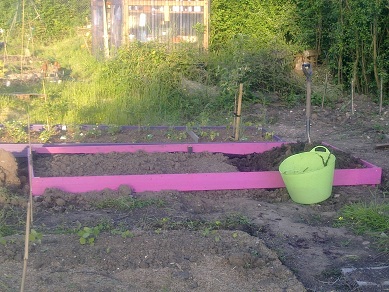 Not a huge amount to report – I’m still digging, and a bit worried now that the clay is about to set like concrete and that’s it for the year. (unless I hose it first, which seems like a proper waste of water) But I do have a new bed. It’s very pink. Seriously Barbie, which was not the intention. Lime green next…