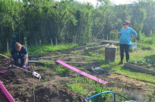 It was the allotment tea party today – really nice to meet new people and the tables were groaning with cake…really tasty cake at that! And in celebration of the sun we had our first BBQ on the plot. Top marks to Maggie for her inventive use of a cold frame lid as a fan to get the coals going…