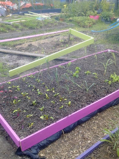 The boards for the next bed have been thoroughly greenified ready for putting in place when this week’s woodchip delivery happens.