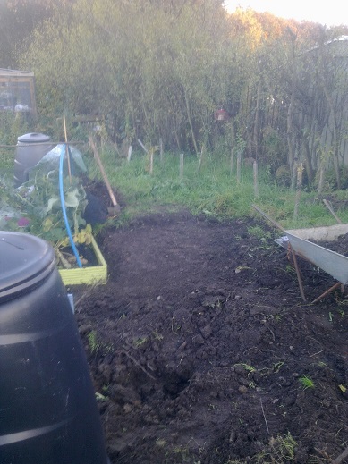 It was a busy weekend with a couple of sessions on the plot. I snaffled 330l dalek bargain on fleabay and collected it in Mum’s car this morning. The should be enough for me with the other 220l one, being still a beginner at this. I plan to empty out the ageing compost in the 220l bin and use it in old compost bags to grow squashes in next season. Am quite excited by that prospect!