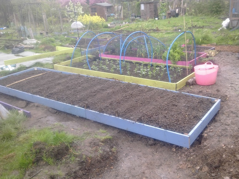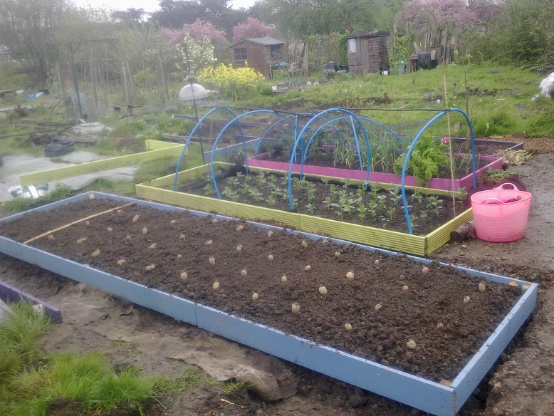 year’s spud bed was 40cm wider than this one, but I’ve planted the same number per row. D’oh. Still, they are in 2 weeks earlier than last year, and touch wood, there will be new spuds ready at the beginning of July. I don’t mind if some of them are small.