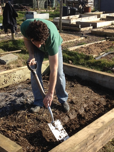 I’ve brought some gravel boards up to edge my half – am still sticking to no raised beds on this patch, other than perhaps for the saffron if I do end up moving it. I’ll paint them at some point, right now I want to get the ground prepped. And it is lovely soil so far, nothing like the slog I’ve had on my plot.