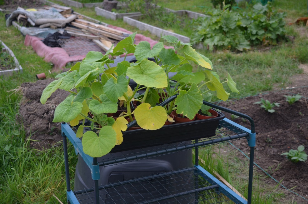 The squashes are outside, hating me. I have nowhere to put them though. I knew this would happen. Every year I overestimate how quickly I can dig, and every year I end up bodging my planting plan. There was some digging, but not nearly enough. I need to step it up a bit. Or just give up on parsnips this year. 16 of the 20 HSL orphan beans have germinated and I need space in the ground for them too, asap. Yikes!