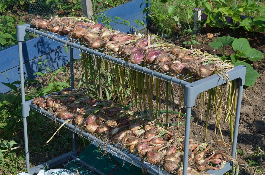 d up all the shallots as the bulbs were starting to split again, which I didn’t want, plus I need the space rather urgently for winter veg. They are drying on the plot for the moment, but if I see rain on the horizon they will be whisked into the shed. Had a couple tonight and they were lovely – and tearily strong.