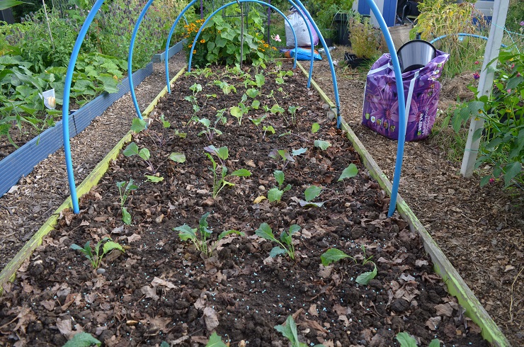 Also out in the ground are swede, turnips, Gilfeather turnip, Shetland kale and Nero di Toscana. Now covered in enviromesh. The sprouts, leeks and PSB haven’t made it yet. I am going to have to pot them on and hope that’s ok till some more ground is ready.