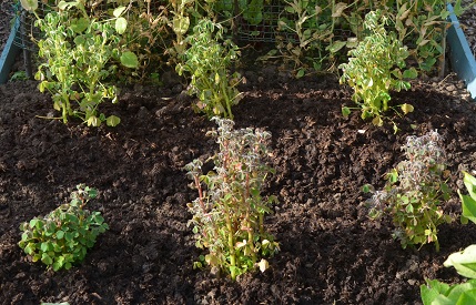 My long-suffering oca is now out and in the ground. There are 2 left over and Andie has said that she will give them a home (phew!). I am looking forward to seeing the huge amount of foliage appearing, and hope that the test to see if big seed tubers=crops of bigger tubers actually works.