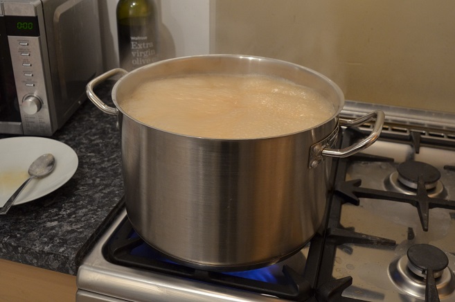 This year’s jelly is beautifully clear, but in years where there aren’t many fruit, the jars are less poetically jewel-like and much more murky from my squeezing the jelly bag. I know that’s heresy in jelly circles, and it goes an unattractive brown colour, but it tastes almost the same and you do then at least get a decent amount. I like it best when it’s just been made, just set with a bit of a wobble, on a piece of flinty cheddar or melting into hot buttery toast.