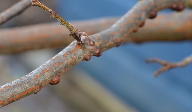 Not me, my fruit bushes. On closer inspection my redcurrants, apple and particularly quince are furred up. Their branches are infested with little brown cases, some worse than others, each of which has a little insect overwintering inside it. I’m reluctant to spray, and at this time of year it wouldn’t have any effect. So it’s out with the fingernails, flicking them into an ice-cream tub to take home. They can go play in the green waste wheelie bin at home and good luck to them!