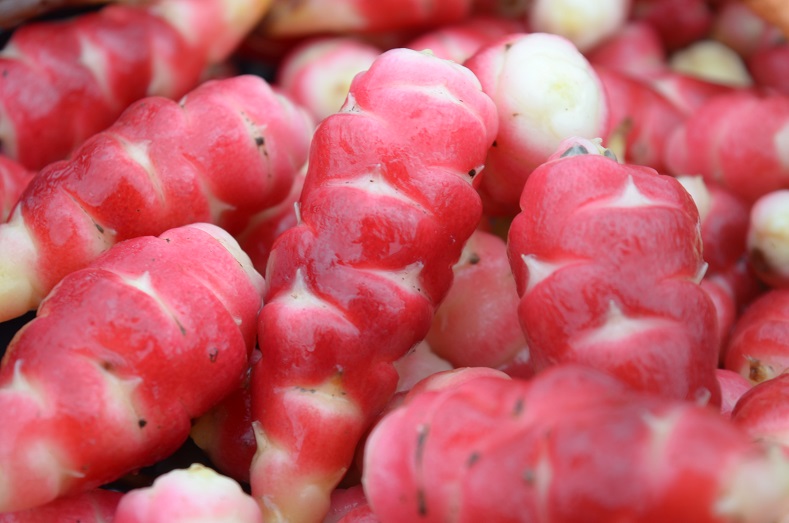 I’m still slowly rescuing oca tubers from the sludge – more because it’s easier to store them in the ground than at home. The next crop will be planted in tubs – getting them out of January’s mud is seriously unpleasant. The red and white ones are so pretty, they sparkle. I have no idea how to cost them for the harvest tally though – any ideas?