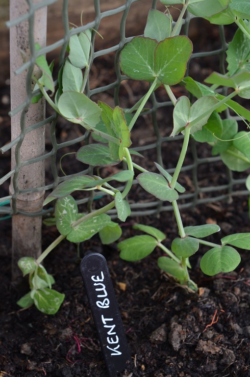 A line of Kent Blue peas seem very happy inside and are already scrambling up mesh. Six slugs made an appearance too. I imagine they are regretting this from their new location in the brambles over by the pond. On clearing out pots I discovered last year’s piquante chillies had grown through and into the bed, so, in case there is still life there, they are now planted out properly. They had to be moved – my staging sets are gradually being reinstalled. On the first at the moment are some cape gooseberries which might still be alive, a whole heap of purple-podded peas and pots filled with beans for a Heritage Seed Library experiment.