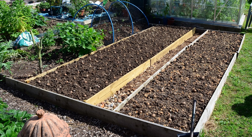 All change on plot #92. My disappointing Charlottes are out – just under 8kg from 18 seed spuds, where normally I would expect at least double that weight – which meant that I could get on with reconfiguring that side of the plot for the new saffron bed.