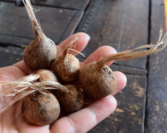 There is a small heap of corms over and I thought I’d offer them out rather than composting them straightaway. They’re divided into packs of about 20 corms each.