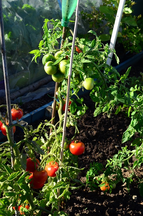 tomato-selectionAfter a really traumatic start tomatoes are ripening thick and fast. I have a full dehydrator whizzing away, and will be starting on sauces for the freezer soon. The picture on the left has 2kg of them, with 8 varieties on show. Clockwise from the top left corner are: Red Buffalo Horn, Sosulka Oranzheraya (Orange Icicle), Sweet Aperitif, Purple Ukraine, Blush, Kenilworth King George, Red Zebra and Burpees Jubilee.
