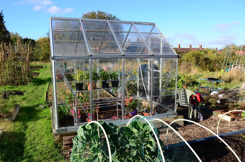 I have been doing other things – just not many while working has been hectic. One of my ‘must-do’ jobs was done last Sunday morning: Him Indoors and I washed the murky insides of the greenhouse. It now sparkles! Hot water from my new camping stove and kettle made it a far less miserable job and it’s all done before our water is turned off for winter. Cue happy dance! The greenhouse was still home to about 6 small chilli plants, plus an enormous pepino draped in hard, unripe fruit, but Monday’s frosts did for them. I might try the pepinos again next year, and keep them inside all season to give me a running chance at eating a ripe one.