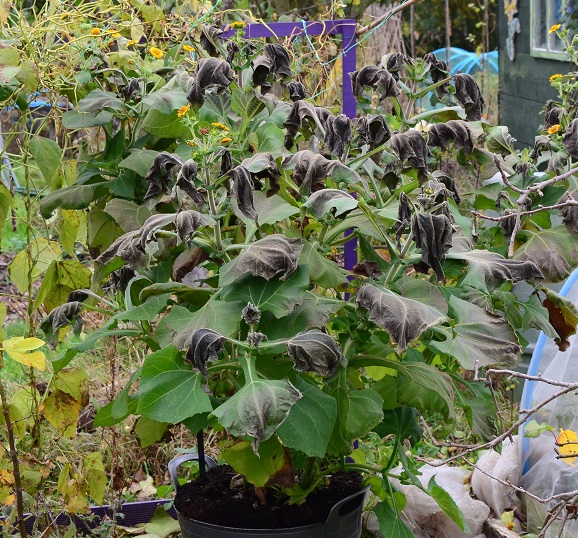 With severe frosts looming on Monday night, I needed to stage an emergency yacon rescue. It was already air-frosted, the leaves turning brown and crispy. The complication being that I’ve been working in the former Olympic Park, which means a 3-hour round trip in the dark. In my pre-plot life I would never have foreseen this.