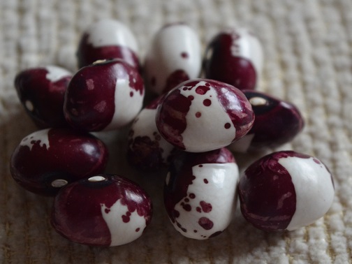 *The beans in the photo at the top are L-R: Inca pea bean (F2 cross/rogue), HSL Inca pea bean, VSP Inca pea bean and, to add some more confusion/comparison, some fresh Monachelle di Trevio beans, which might (or might not) darken more with age.