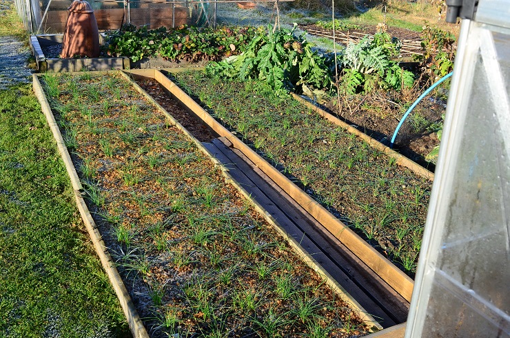 On investigation, I finally have garlic – just 3 stubby shoots showing above ground so far in the elephant garlic section. No show at the moment from the Red Dukes.