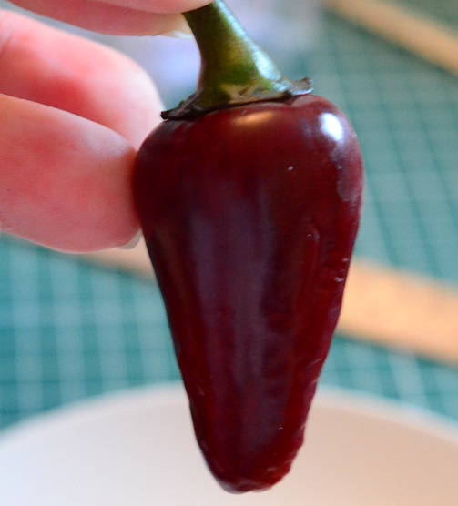 Fish (c. annuum) is a stunning pepper and plant, variegated white and green. The variegation is a bit iffy – some plants had plenty, some had nearly none. The same goes for the chillies which eventually turn from green and white to red The transition can make them look a bit muddy – brown seems to be an intermediate colour on the way to red. Given that the amount of variegation isn’t predictable it helps to grow a few and keep the ones that are best. Also its fruits don’t tend to be all the same heat – a bit like the Padrons I grow, some can be fairly mild and others are seriously hot. The tradition is that the chillies are used when green in fish dishes.