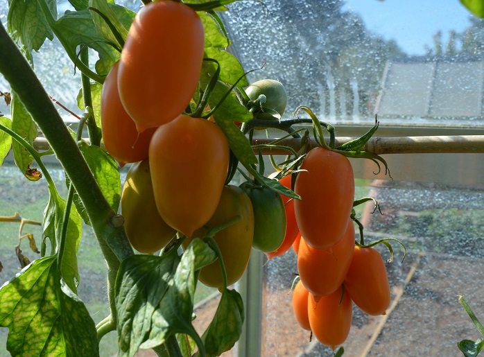 Burpee’s Jubilee (cordon) came to me from a seed circle and is a stable cross of Tangerine and Rutgers tomatoes. The plants are fairly squat, although they are cordons. Mine only got to about 4ft high in the greenhouse, whereas the others got to about 8ft. That does impact yields, so don’t expect to be overwhelmed by tomatoes. The tomatoes are a bright orange, big and solid, with sweet not acid taste. They go really well in salads and sauces. Given their lovely flavour and the issues in my greenhouse this year they will get another chance. Health & Vigour 6/10