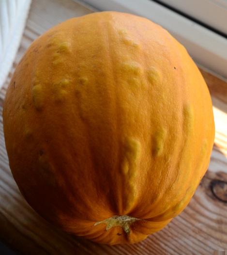 They are easy to get into, unlike some of the squashes you need a cleaver for. Inside they have thick flesh, which is smooth and has a lovely almost sweet potato flavour. I used one to make this Maple Pumpkin Flan for Thanksgiving, which is essentially a pumpkin pie flavoured creme caramel. Interesting, and probably to be repeated some day. There’s one left, and that’s destined to go with a savoury dish.
