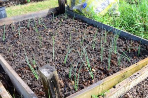 The sun is out, everything’s clothed in fresh green and I got off lightly frost-wise. Lady Christls and my Szechuan pepper are a bit touched and the figs look sad, but their growing tips are fine and they will perk up soon. So now it’s all guns blazing to get plants sown and out. Broad beans are flowering away and the fruit bushes are dripping with baby berries, but there is very little else to see. Ruddy cat has been rolling in the garlic again – and I’ve netted my newly planted and wonderful onions to stop him doing the same there. The interminableness of my digging agenda is balanced out by how fabulously weed-free the beds I double-dug and sifted are on my own plots. If I sound smug, it’s because I really am!