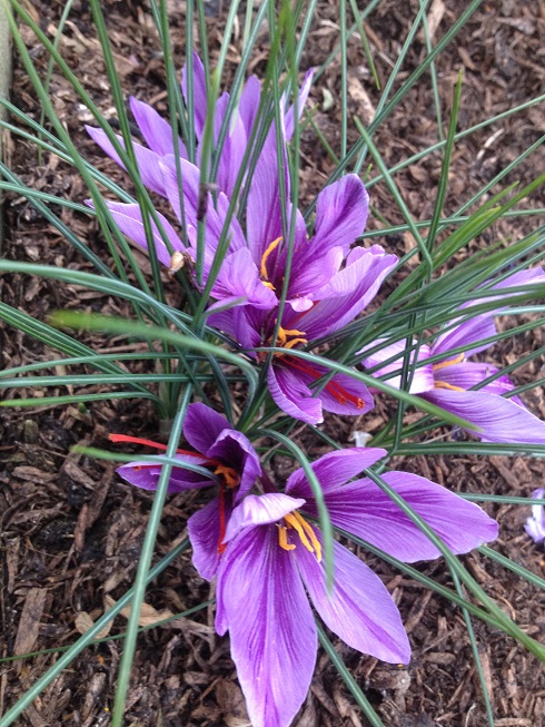 The saffron beds have been flowering like crazy, earlier than ever before. The flowers started on 21 September and are just beginning to peter out slowly. It means the whole harvest will be in before the onset of awful weather and a brief period of commuting. Yippee! I weeded & topped them up with fertiliser and manure before Lou Nicholls came to train us on summer pruning fruit trees (more on this later!) so that at least one corner of the plots didn’t look shameful. This is the first year I haven’t lifted and thinned them, so I am very interested to see how they do. So far it looks like my lifting and thinning habit has robbed me of quite a bit of harvest in previous years – some of the clumps are already on flower #6, rather than the 2-3 I have had before. But I won’t know how much more I have until the strands have dried out completely.