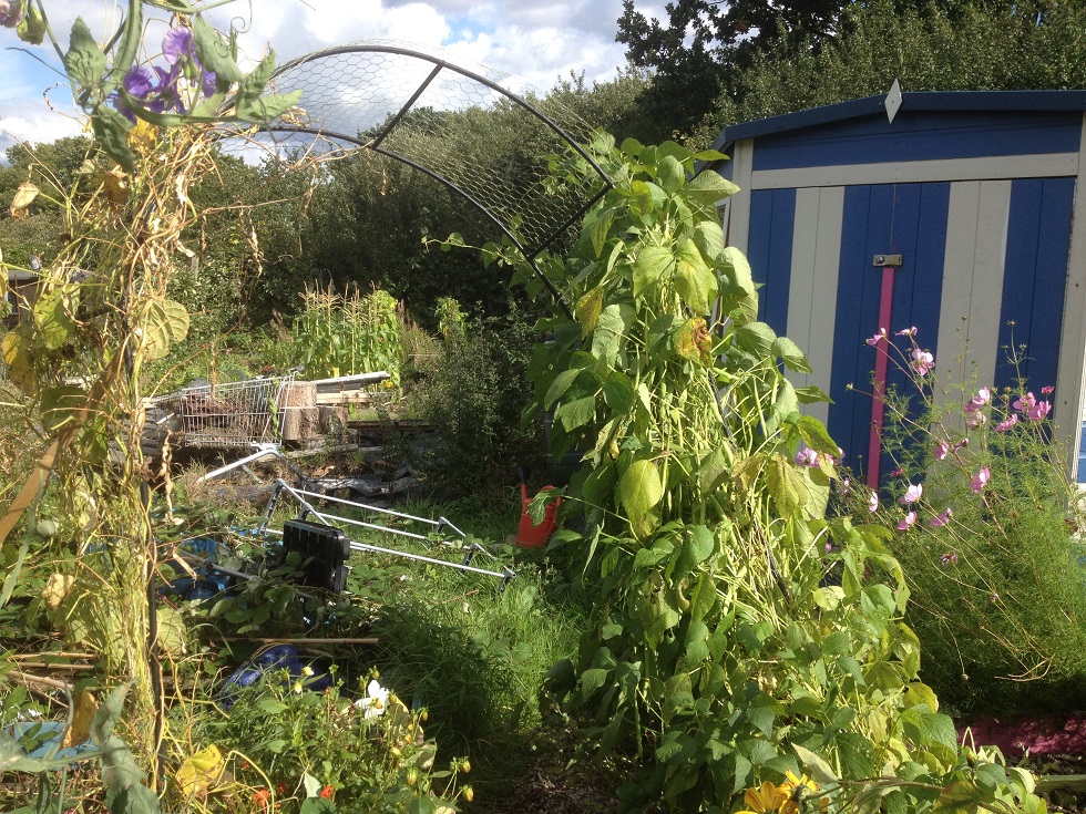 My diary and actual allotmenteering have both had something of a hiatus. Earlier this year I got back into horses, via volunteering at the RDA. A time-consuming passtime to add to a time-consuming hobby! My plots have really suffered and visits have been fleeting, particularly over the last 12 weeks or so when I’ve either been away or acting as nursemaid to my favourite quadruped. (He had an abcess. There is a ruddy gurt hole in his foot & it’s taking ages to heal. My poulticing is now the stuff of legend.*)